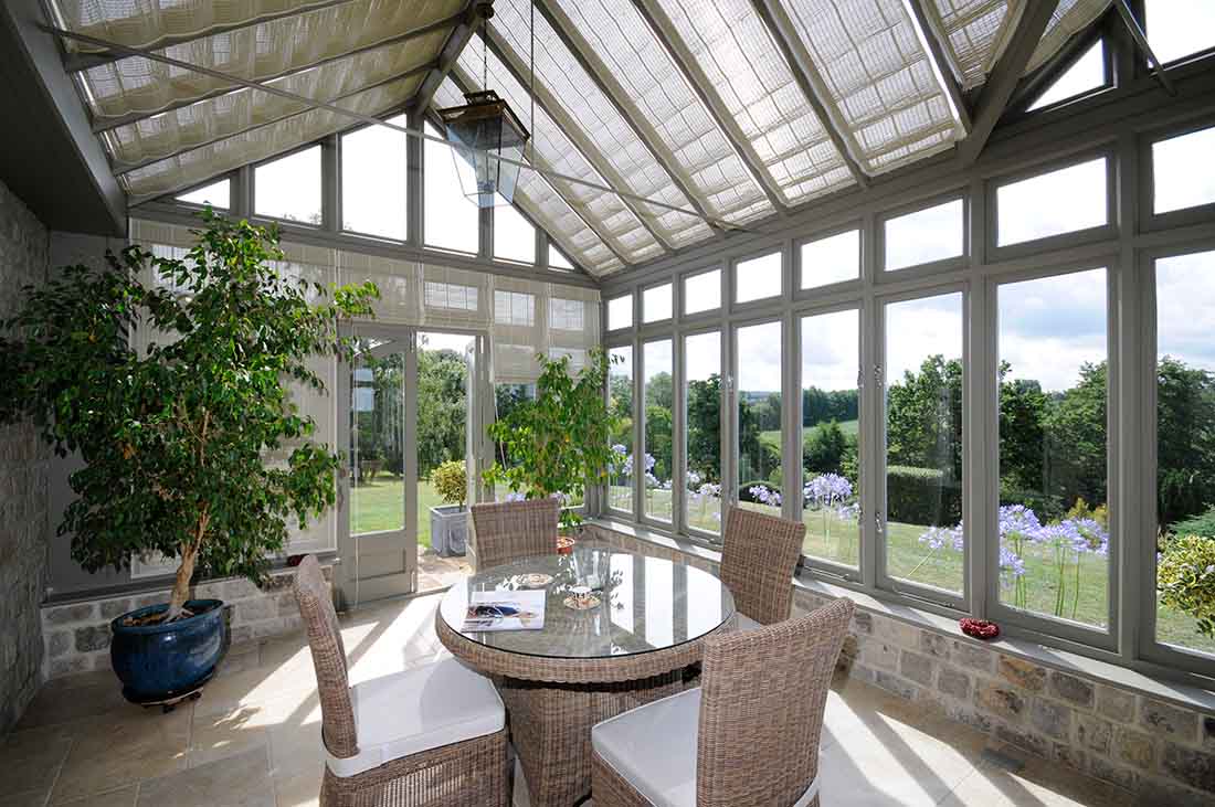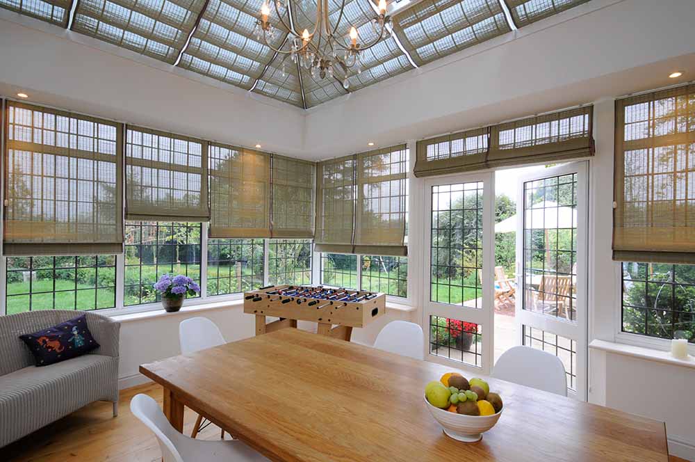 The classic look of Pinoleum wood-weave blinds make them ideal for timber conservatories and orangeries, and combine a traditional style with the latest blinds technology.
